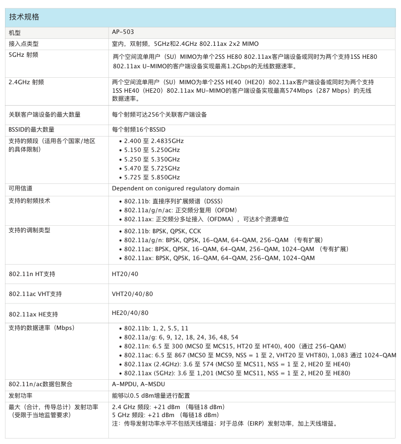 室内中密度Wi-Fi 6接入点AP-503提供兼具...